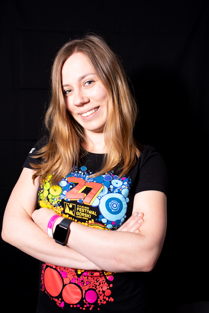 Koordynatorka administracji Festiwalu. Zajmuje się wieloma tematami, od pracy biura, przez obsługę gości, po rozwiązywanie spraw różnych. Z zamiłowania udziela się w organizacjach pozarządowych, które wymagają wielu umiejętności organizacyjnych, zaangażowania, dyscypliny, odpowiedzialności, komunikatywności i empatii. Koordynuje pracę w różnych projektach – głównie eventowych z zakresu sportu, kultury, ochrony zdrowia. Posiada bogate doświadczenie w pracy z ludźmi – codziennie pomaga innym rozwiązywać ich problemy zdrowotne.